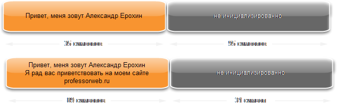 • Capacity, указывающее максимальную длину строки, которая может поместиться в выделенную для объекта память