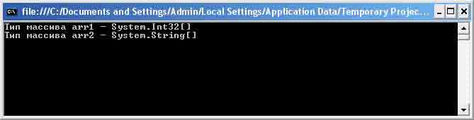 Console.WriteLine("Тип массива arr2 - {0}",arr2.GetType());