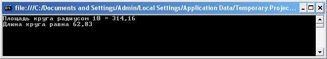 Console.WriteLine("Длина круга равна {0:#.##}",myCircle.LongCircle(r));