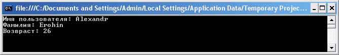 Console.WriteLine("Имя пользователя: " + Name);