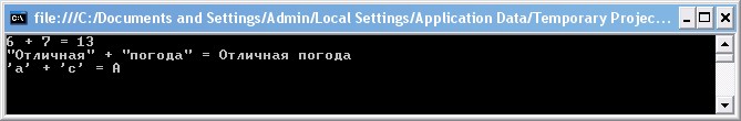 Console.WriteLine(""Отличная" + "погода" = " + del2("Отличная","погода"));