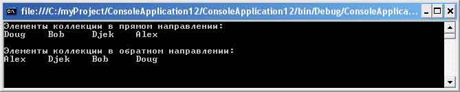 Console.WriteLine("Элементы коллекции в прямом направлении: ");