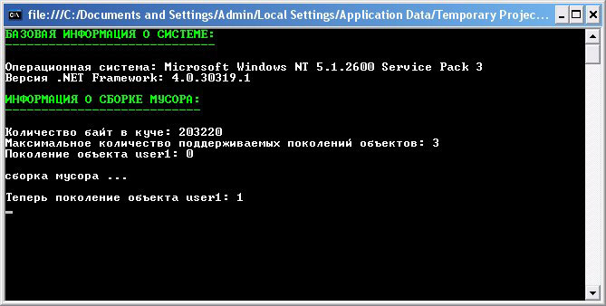 Console.WriteLine("Поколение объекта user1: " + GC.GetGeneration(user1));