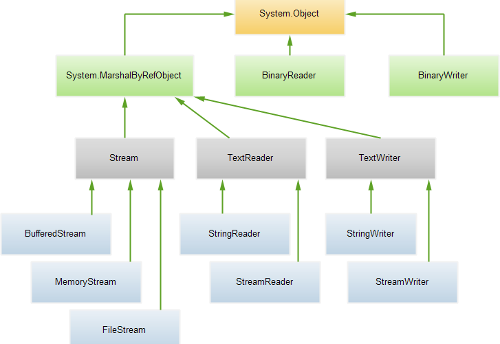 На рисунке показано, как фактически выглядит иерархия классов в пространстве имен System.IO, которые имеют отношение к потокам: