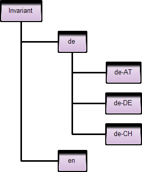 Специфические культуры ассоциируются с реальными существующими культурами, которые перечислены в упомянутом в предыдущем разделе документе RFC 1766. Они могут отображаться на нейтральные культуры. Например, de может служить нейтральной версией для таких специфических культур, как de-AT, de-DE, de-CH и т.д. de представляет собой сокращенное обозначение немецкого языка, a AT, DE и СН — сокращенное обозначение таких стран, как Австрия, Германия и Швейцария.