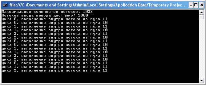 Создавать подобный список потоков самостоятельно не понадобится. Для управления таким списком предусмотрен класс ThreadPool, который по мере необходимости уменьшает и увеличивает количество потоков в пуле до максимально допустимого. Значение максимально допустимого количества потоков в пуле может изменяться. В случае двуядерного ЦП оно по умолчанию составляет 1023 рабочих потоков и 1000 потоков ввода-вывода.