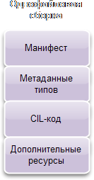 В однофайловых сборках все необходимые элементы (заголовки Windows и CIL, метаданные типов, манифест и необходимые ресурсы) размещаются внутри единственного пакета *.ехе или *.dll. На рисунке схематично показано устройство однофайловой сборки: