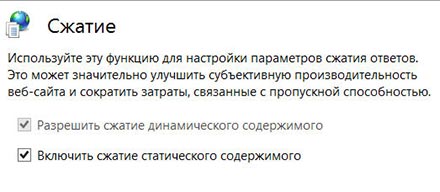 Сервер IIS поддерживает два типа сжатия, статическое и динамическое. Прежде чем использовать сжатие, убедитесь сначала в наличии компонентов статического и динамического сжатия.
