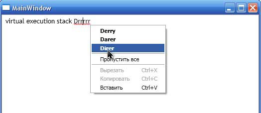 У элемента TextBox есть необычная возможность — встроенная проверка правописания, при которой нераспознанные слова подчеркиваются красной волнистой линией. Пользователь может щелкнуть правой кнопкой мыши на нераспознанном слове и выбрать из списка правильный вариант.