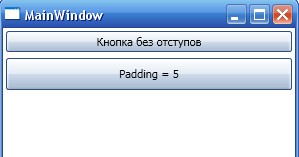 <Button Margin="3">Кнопка без отступов</Button> <Button Padding="5" Margin="3">Padding = 5</Button>