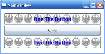 Например, рассмотрим окно с тремя кнопками, показанное на рисунке. Две из трех кнопок используют одну и ту же кисть — кисть изображения, которая закрашивает их мозаичным узором с улыбающимися рожицами: