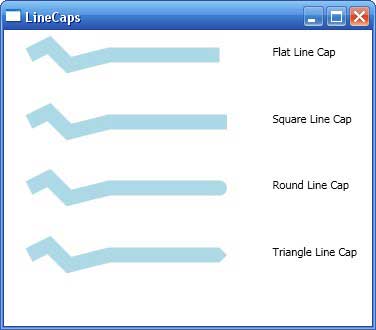При рисовании фигур Line и Polyline можно указать форму начальной и конечной точек линии, используя свойства StrokeStartLineCap и StrokeEndLineCap. (Эти свойства не имеют эффекта в других фигурах, поскольку те замкнуты.)