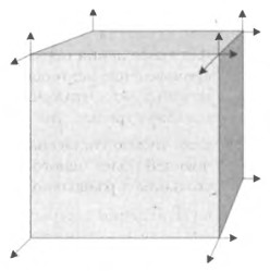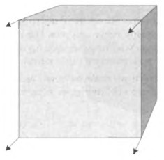 Треугольники на других сторонах куба также должны иметь собственные нормали. В каждом случае нормали должны быть перпендикулярны поверхности. На рисунке ниже показаны нормали на передней, верхней и правой гранях куба. Когда среда WPF текстурирует куб, она просматривает каждый треугольник по одному. Например, возьмем переднюю поверхность. Каждая точка встречает направленный свет одинаково. По этой причине каждая точка будет освещена одинаково. В результате, когда WPF распределяет освещенность на четыре угла, то создаст плоскую, равномерно окрашенную поверхность без текстурирования:
