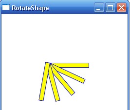 При установке свойства RenderTransformOrigin можно использовать значения больше 1 или меньше 0 для указания точки, расположенной за пределами фигуры. Например, эту технику можно применять с трансформацией RotateTransform для поворота фигуры по большой дуге вокруг очень удаленной точки, такой как (5,5).