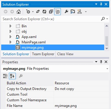 Это стандартный подход, аналогичный используемому в приложениях .NET других типов (например, в приложениях WPF). Например, если нужно вывести изображение в элементе Image, добавьте файл изображения в проект. По умолчанию программа Visual Studio присвоит свойству Build Action файла изображения значение Resource: