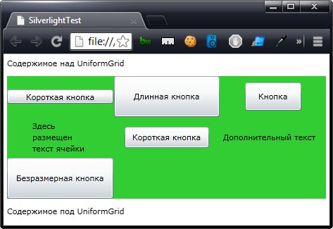 <TextBlock Margin="5" Text="Содержимое над UniformGrid" />