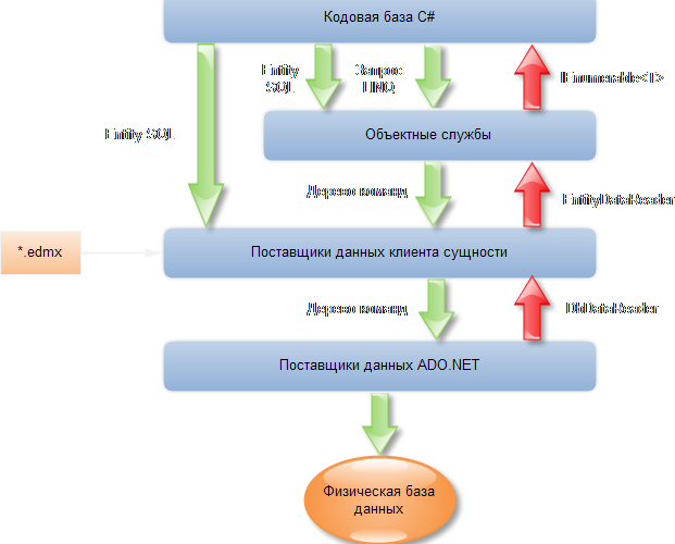 Давайте рассмотрим архитектуру EF: