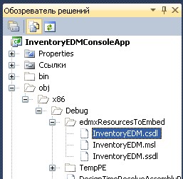 Данные в этих файлах будут встроены в сборку как двоичные ресурсы. Таким образом, приложение .NET обладает всей информацией, необходимой для понимания концептуального, физического и уровня отображения модели EDM.