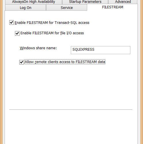 Чтобы разрешить хранилище FILESTREAM, необходимо быть администратором Windows локальной системы и обладать правами администратора (sysadmin). Чтобы изменения вступили в силу, необходимо перезапустить экземпляр сервера базы данных.